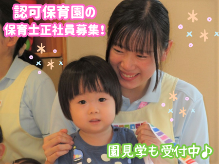 【入社お祝い金最大10万円】ひとり一人の個性を尊重した保育を大切にしている認可保育園で子どもたちの笑顔に囲まれてお仕事…