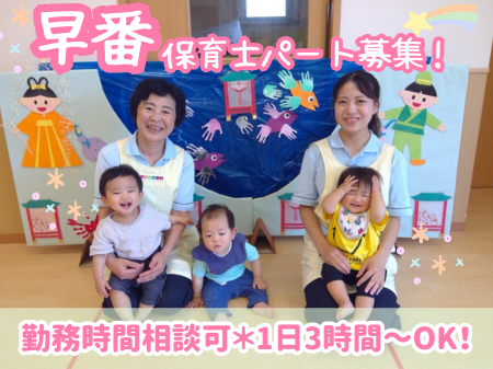 | 仕事内容 | 0歳児~5歳児までのお子様を預かる保育園で保育業務全般のお仕事をしていただきます。 ・着替え、食事補助 ・保育環境の整備(主活動の準備、清掃など) ・保護者対応(連絡帳の作成など) ・帳票作成(日誌、行事計画など) ※保育記録などはICTシステム(コドモン)を導入しています。 ※タブレット端末を導入し、事務業務の効率化をサポートしています。 ★2026年度入社をご希望の方は、面接時にご相談ください。 |