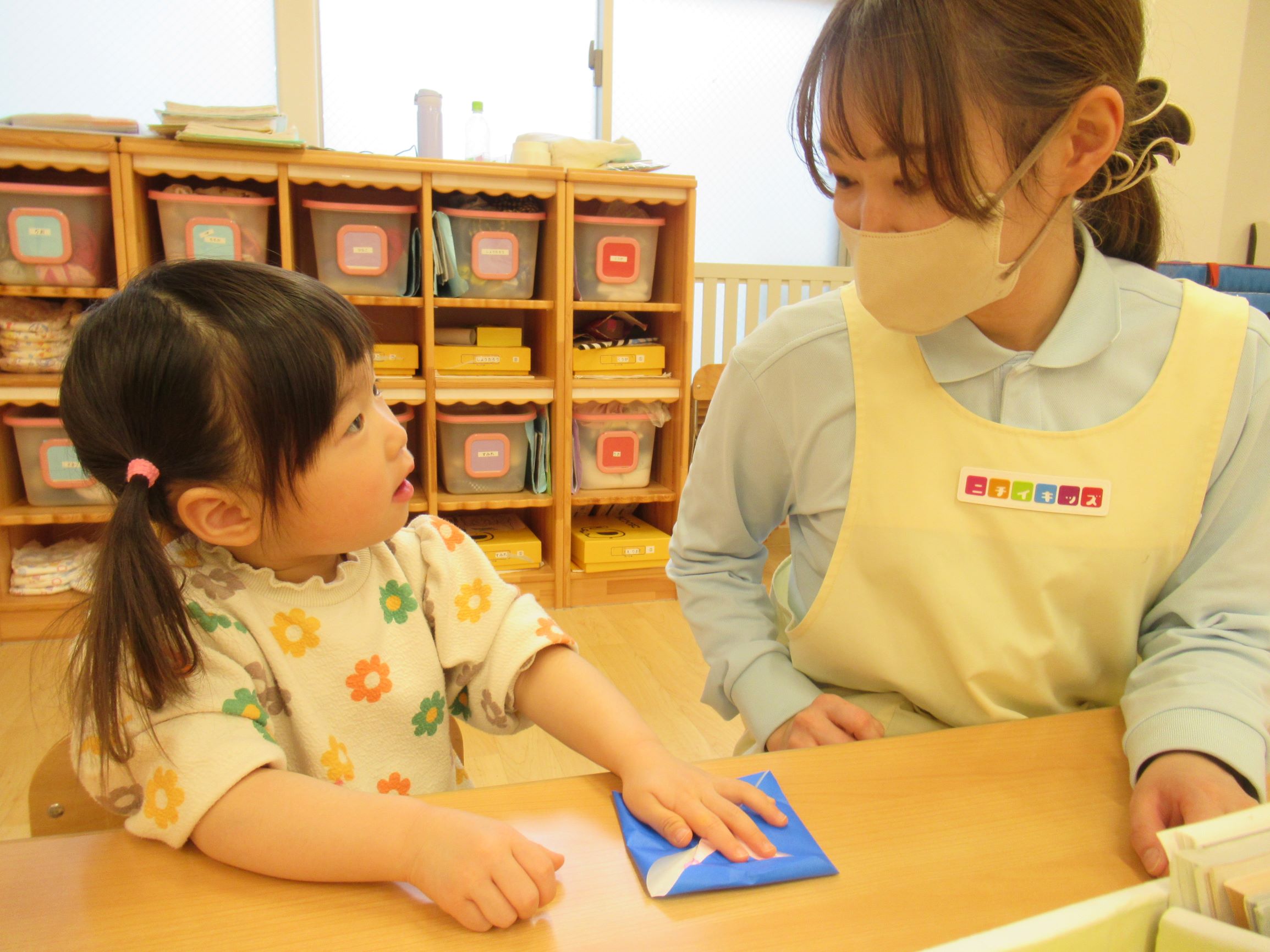 新人の保育士さんには、OJT制度による担当職員のサポートがあります。分からないことがあったら、担当職員に何でも聞くこともでき安心して働くことができます。