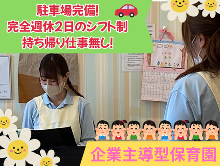 | 仕事内容 | 子どもたちの年齢や成長に応じた保育業務全般 <0~5歳児対象/定員28名の企業主導型保育園> ・着替え、食事の補助 ・保育環境の整備(主活動の準備、清掃等) ・保護者対応(連絡帳の作成等) ・帳票作成(日誌、行事計画等) |