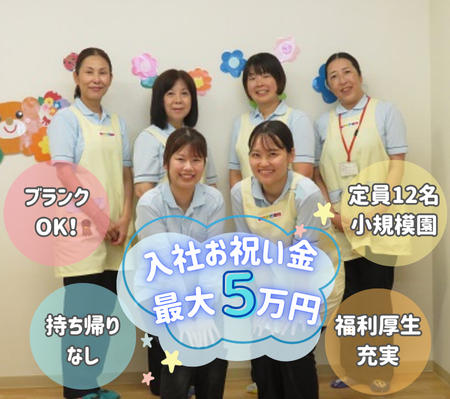 | 仕事内容 | お子様1人ひとりの個性を大切にしながら 保育業務全般を行っていただきます。 【具体的な仕事内容】 ・授乳、オムツの交換、着替え、食事補助 ・教材の検討及び行動計画 ・保育環境の整備 ・保護者対応 ※持ち帰り仕事なし |