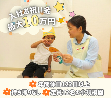 | 備考 | <求める人物像> ・明るくコミュニケーションの取れる方 ・協調性のある方 <ニチイキッズの3つの保育目標> ・すくすく育つ :健全な心と健康な身体 ・わくわく遊ぶ :積極的に学ぶ好奇心、 豊かな想像力と自己表現力 ・いきいき過ごす:自ら考え行動する自発力、 地域で育む思いやりと広い視野 <ニチイキッズのカリキュラム> ・食育活動(おもいっきり給食) ・英語プログラム ・リトミック <その他備考> ・受動喫煙防止措置:あり(禁煙) ・試用期間:3ヶ月(給与額に変更はありません) ・託児所あり(利用条件あり) ・従事すべき業務の変更の範囲:変更なし ・就業場所の変更の範囲:引っ越しを伴わない異動の可能性あり 【受動喫煙対策】 敷地内禁煙 【業務内容・就業場所の変更範囲】 当社が定める業務全般・ 就業場所 (原則、所属する支店・支部が管轄する就業場所) |