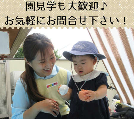 | 仕事内容 | 対象年齢:0~2歳児 定員:19名 子どもの年齢や成長に応じた保育業務全般を行っていただきます。 ・着替え、食事の補助 ・保育環境の整備(活動の準備、清掃等) ・保護者対応(連絡帳の作成等) ・帳票作成(日誌、行事計画等) ・製作物等の制作 ※未経験、ブランクがある方も丁寧に指導します。 実際にブランクがある方も活躍しているので安心してください! ※持ち帰り仕事なし。 ※保育記録などはICTシステムを導入しており業務効率を図っています。 |