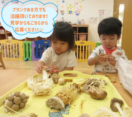 | 仕事内容 | 対象年齢:0~5歳児 定員:25名 子どもの年齢や成長に応じた保育業務全般を行っていただきます。 ・着替え、食事の補助 ・保育環境の整備(活動の準備、清掃等) ・保護者対応(連絡帳の作成等) ・帳票作成(日誌、行事計画等) ・製作物等の作成 ※未経験、ブランクがある方も丁寧に研修します。 実際にブランクがある方も活躍しているので安心してください! ※持ち帰り仕事なし。 |