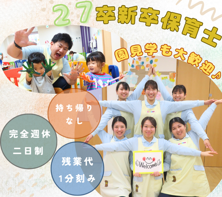 【園見学大歓迎☆】新卒求人/完全週休二日制/残業手当1分単位支給/ICTシステム導入