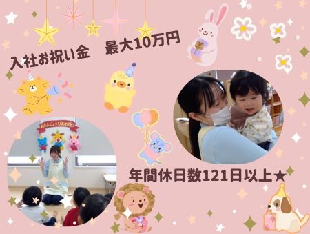 | 仕事内容 | 子どもたちの年齢や成長に応じた保育業務全般を行っていただきます。 ・着替え、食事の補助 ・保育環境の整備(主活動の準備、清掃等) ・保護者対応(連絡帳の作成等) ・帳票作成(日誌、行事計画等) ※持ち帰り仕事なし ※サービス残業一切なし ※保育記録などはICTシステムを導入しており業務効率を図っています |