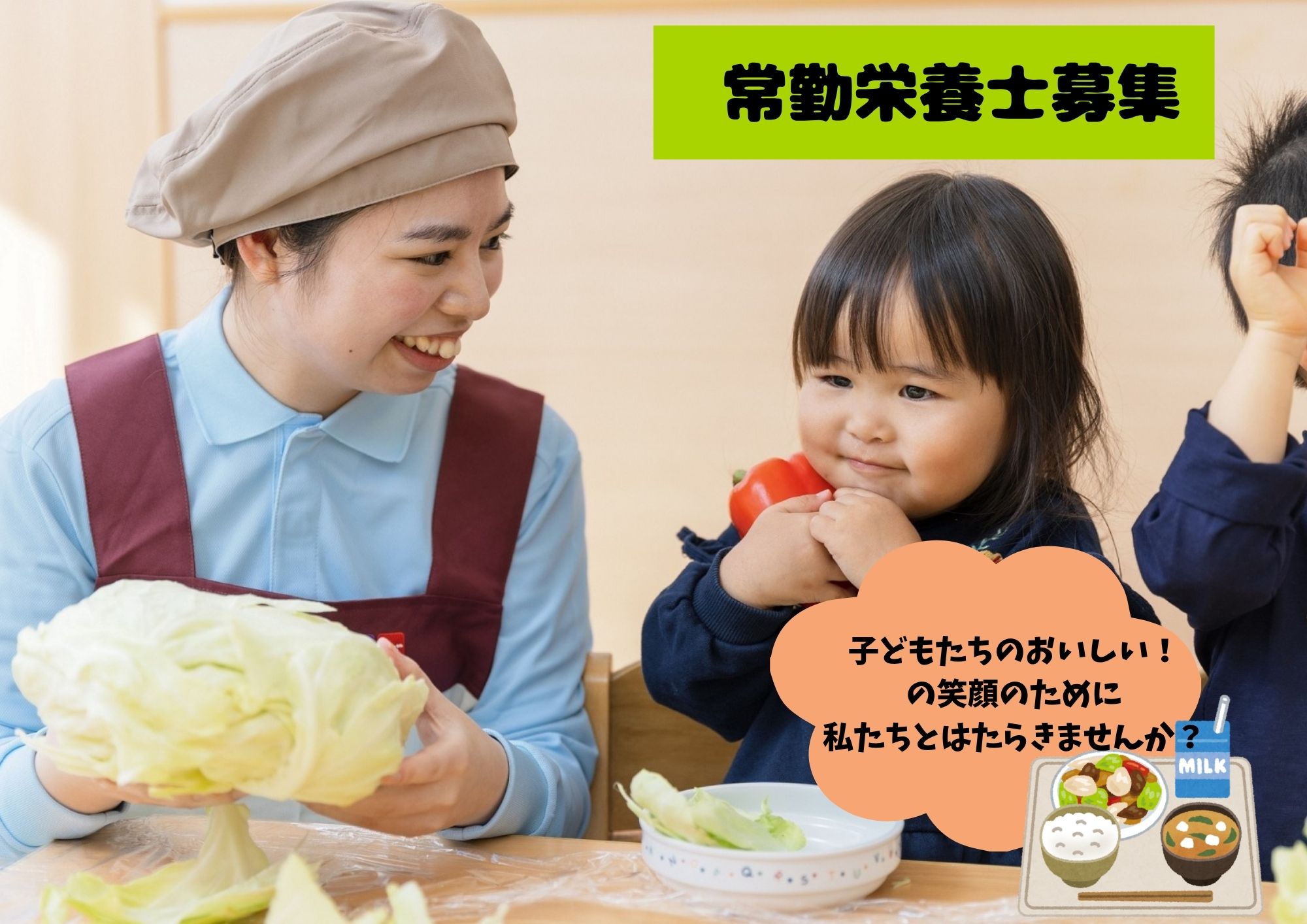 【正社員】★日祝休み★完全週休二日制★ 栄養士募集!0~5歳児対象、定員60名の保育園の給食やおやつ作り