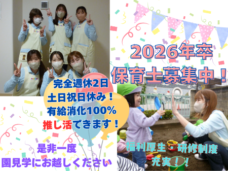 【正社員】対象年齢0~2歳 定員17名の企業主導型保育園 完全週休2日制、持ち帰り業務無し、明るい雰囲気で続けやすい職場です。