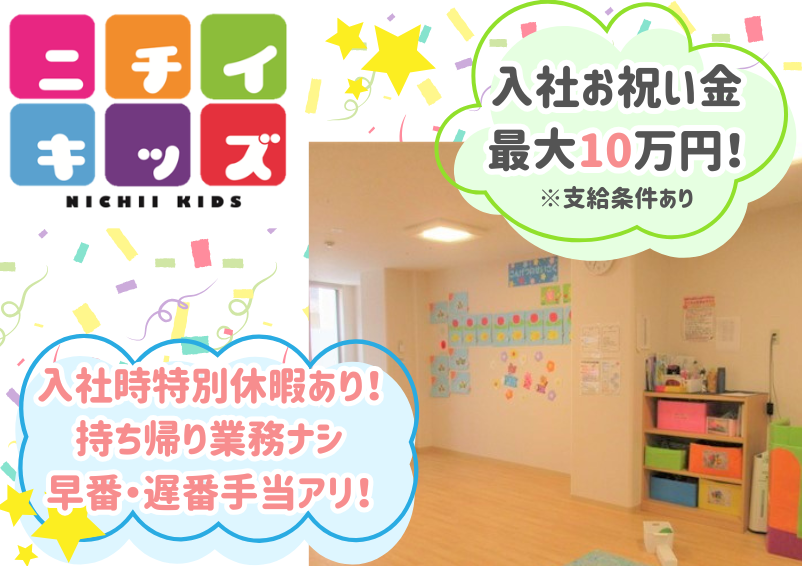 小規模なアットホーム/未満児保育/OJTトレーナーが入社からサポート/入社お祝い金制度あり
