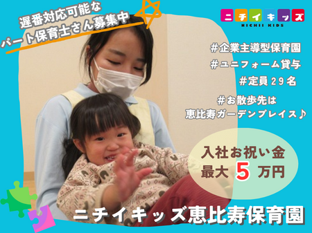 【入社お祝い金最大5万円!※条件あり】遅番できる方大歓迎/スキマ時間活用/定員29名の企業主導型保育園