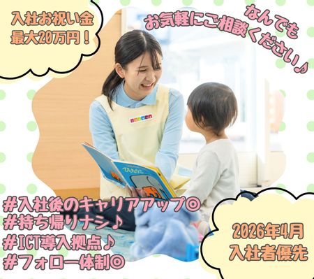 【入社お祝い金最大20万円支給】定員12名の企業主導型小規模保育園です♪完全週休二日制|園見学受付中