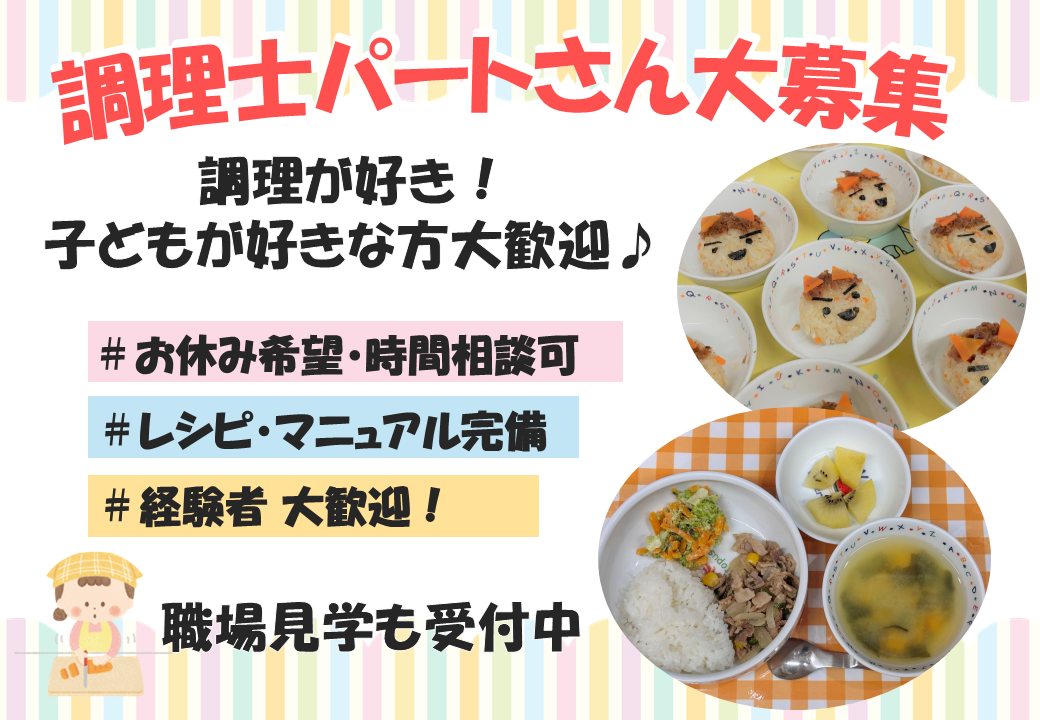【無資格OK!】調理が好き!子どもが好きな方♪0歳~2歳の子ども達に美味しい給食を作りませんか?