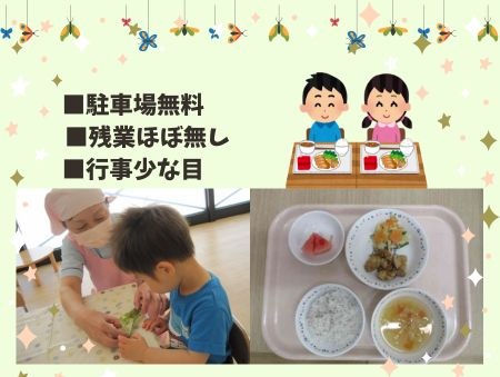 岡山市北区の企業主導型保育園/日中のみの勤務/食数15食程度/福利厚生充実