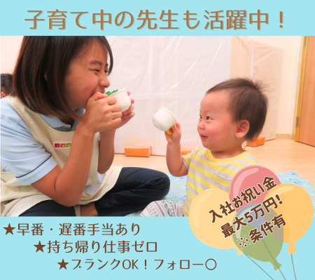 【入社お祝い金 最大20万円!】保育実務経験を活かしてキャリアアップを目指したい方募集!