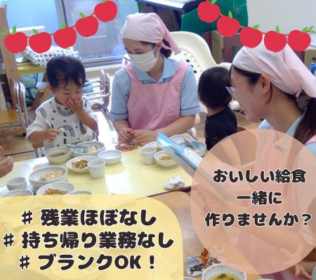 お料理好きな方、0~2歳児定員18名のアットホームな保育園でやりがいのあるお仕事で自分らしく働いてみませんか?