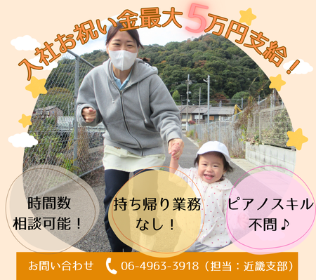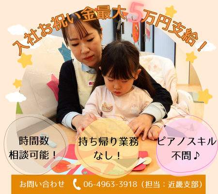 【入社お祝い金最大5万円】土曜日出勤できる方大歓迎!子育て中の方でも大歓迎★