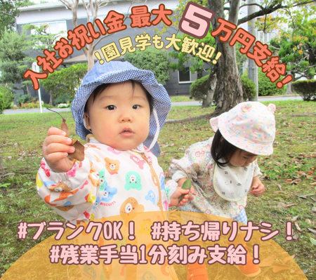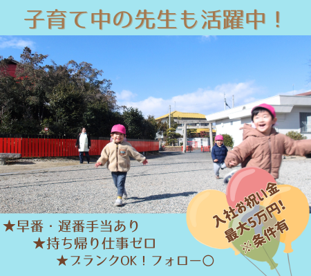 【入社お祝い金最大5万円】入社時期相談可能!/開園4年目/各駅徒歩5分/扶養内勤務OK/早遅手当有り