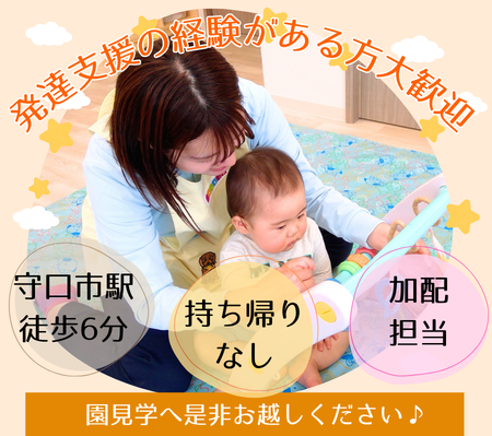 有資格、無資格どちらもOK!扶養範囲内で働きたい方 勤務は週1日~2日程度 60歳以上も応募可 園見学随時受け付けています!