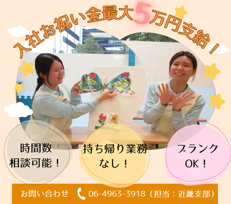 【入社お祝い金最大5万円!】園見学受付中!1人1人に向き合った保育をしましょう