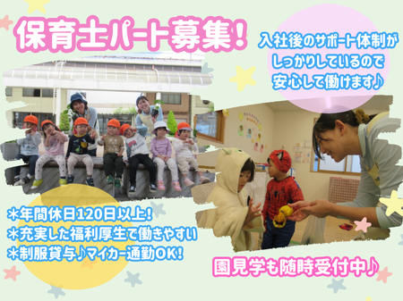 早番パート/子育て中の保育士も活躍/勤務時間相談可