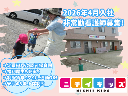 【2026年4月入社希望者向け】子どもたちが『おもいっきり』のびのびと活動できる環境や活動内容を、スタッフみんなで考え作り上げていく保育園です。この園で生活するすべての人が、自分のカラーを発揮して、それぞれの成長を喜び合い、彩ある保育園にしていきましょう♪