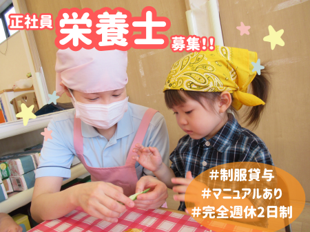 【26年4月入社】【こどもの食育活動に関わりたい方歓迎!!】保育園でおやつ・お給食を作ってみませんか?三大アレルギーを使わない食育活動をしております!