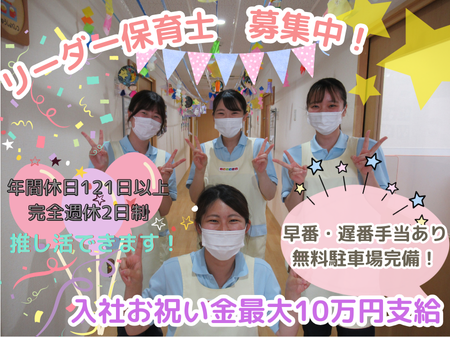 産休育休代替/子育て中の保育士も活躍/勤務時間相談可