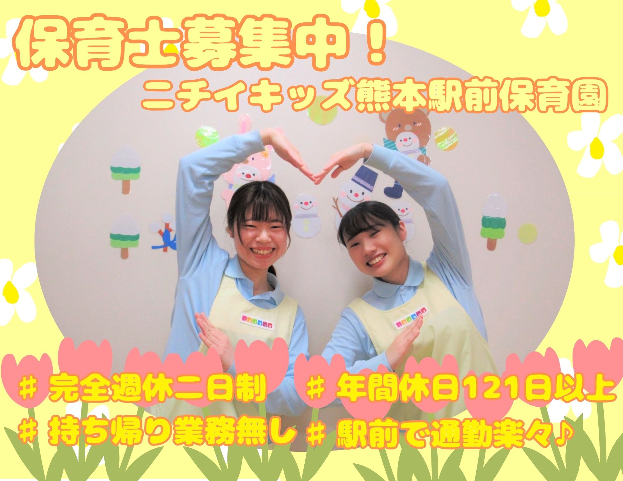 【正社員】保育士募集!★完全週休2日制★0~2歳児対象、定員19名の保育園 駅近!アミュプラザくまもと近く!残業ほぼ無し!持ち帰りの業務無し!