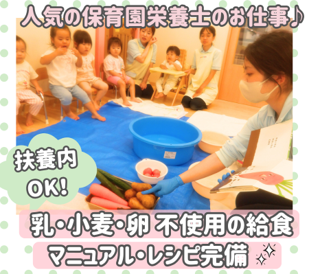 ★2026年4月入社★3大アレルゲンを使わない献立の「おもいっきり給食」を提供♪みんなで同じメニューを食べる楽しさを感じながら、体づくりと食べることに重点を置いています☆!みんなが笑顔になれる給食を一緒に作りましょう!