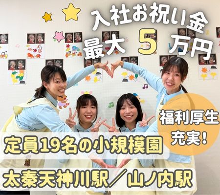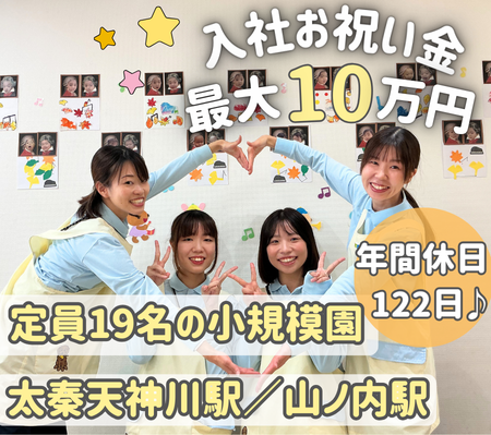 【入社お祝い金最大10万円!】入社時期相談可能!小規模でアットホームな園です♪経験を生かして働きませんか??