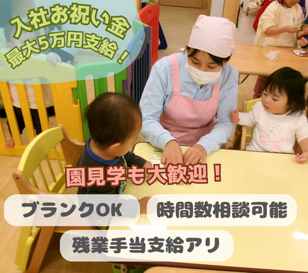 【入社お祝い金最大10万円】入社時期相談可能!保育士資格を活かせるお仕事♪年間休日122日以上でプライベートも充実♪