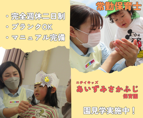 完全週休2日制|未経験者・ブランクのある方も歓迎|定員78名の認可保育園
